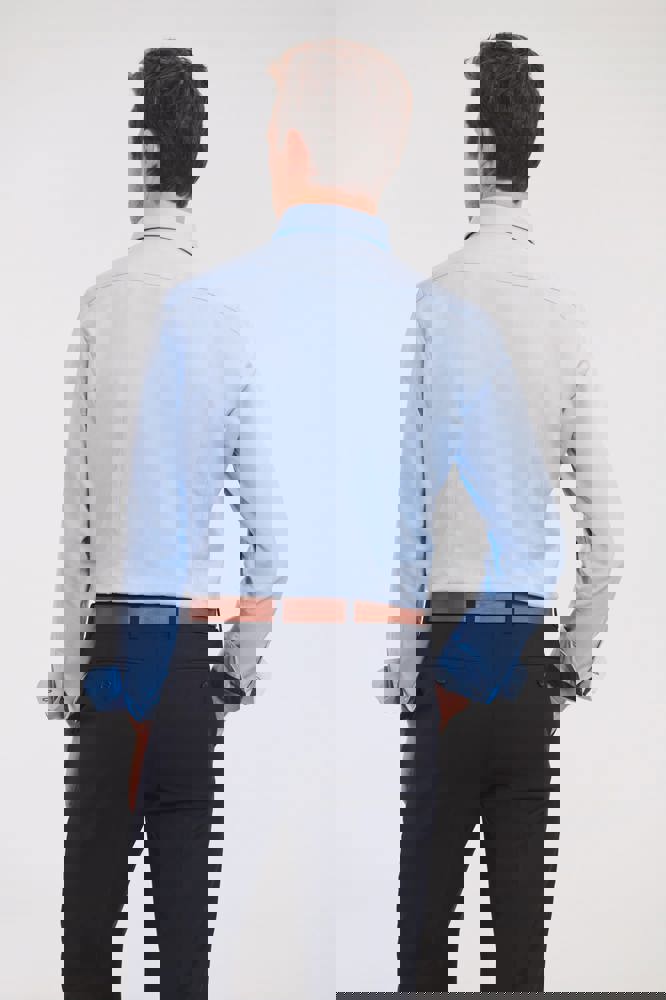 84% Baumwolle / 16% Polyester. Tailliert. Under-Button-Down Kragen. Kontraste: Innenseite Manschette, Innenseite Kragen mit Kontrast-Paspel. Kontrasteinfassung an unterer Knopfleiste. Kontrastfarbenes Knopfloch an Manschette und unterstem Knopfloch. Abnäher hinten für verbesserte Passform. Abgerundete, mit 2 Knöpfen verstellbare Manschetten. Abgerundeter Saum.