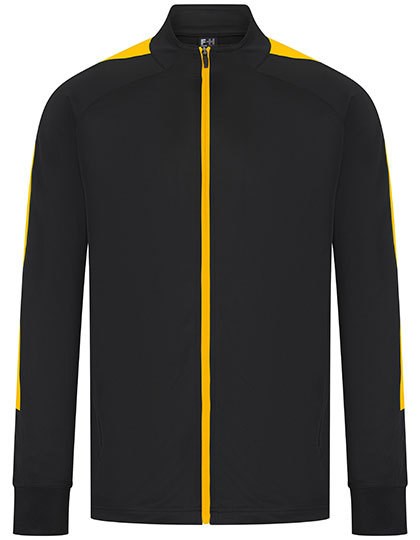 Sportanzugjacke aus Strickgewebe mit kontrastfarbenen äußeren Ärmeleinsätzen | Kontrastfarbener Front-Reißverschluss | Seitliche Taschen mit Reißverschluss | Trichterkragen und Elastische 1x1 Bündchen | Feststellschieber an allen Reißverschlüssen