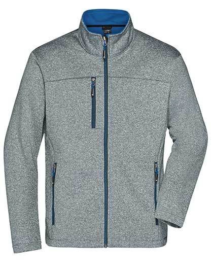 Softshelljacke in Melange-Optik | Angenehmes, weiches, 2-lagiges Softshellmaterial | Fleece-Innenseite in Kontrastfarbe | Durchgehend hinterlegter Front-Reißverschluss mit Kinnschutz | Stehkragen | Zwei seitliche Taschen und eine Brusttasche mit Reißverschluss | Leicht taillliert