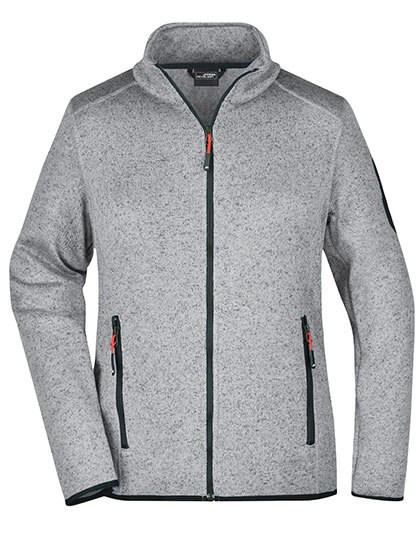Modische Strickfleece-Jacke mit Stehkragen | Weiches, wärmendes, pflegeleichtes Material in Melange-Optik | Außenseite Strickoptik, Innenseite flauschig weich angeraut | Figurbetonende Teilungsnähte | Seitliche Taschen mit Reißverschluss | Kontrastfarbige Einfassung an Saum und Ärmel | Trendige Ärmeltasche mit Reißverschluss