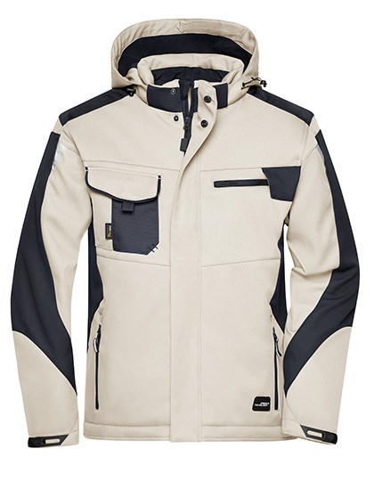 Professionelle Softshell-Jacke mit warmem Innenfutter | Robustes, strapazierfähiges Softshell-Material | Wind- und wasserabweisend (2.000 mm Wassersäule) | Atmungsaktiv und wasserdampfdurchlässig (2.000 g/m²/24h) | Stehkragen innen mit weichem Fleece | Abnehmbare, regulierbare Kapuze | Schulterbereich mit CORDURA® verstärkt | Durchgehend unterlegter Reißverschluss mit Windschutzblende | Innenliegende wärmende Armbündchen | Seitentaschen, Brusttasche und Innentasche mit Reißverschluss | Brusttasche mit Klappe, Handytasche innen | Reflektions-Elemente (ohne Schutzfunktion/keine PSA) am Arm und Rückenteil | Reißverschluss zur Rückenveredelung