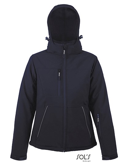 8000 mm Wassersäule | Atmungsaktive Membran | Futtertaft: 100% Polyester | Füllung: 100% Polyester 160gsm | Vollständig wattierte Softshelljacke für Damen | Abnehmbare Kapuze mit Kapuzenschirm, einstellbar mit zwei Zugkordeln mit Stoppern und Klettverschluss | Drei Fronsttaschen mit Reißverschluss | Eine Reißverschluss-Ärmeltasche | Eine Reißverschluss-Innentasche | Eine Mesh-Innentasche | Verstellbare Ärmelbündchen mit Klett-Patte und inneren Stretch-Bündchen | Elastischer Kordelzug am Bund