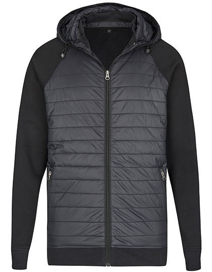Gesteppte Hybrid Jacke | Classic fit | 3-lagige Sweatware an Ärmel und Rücken, innen weich angeraut mit einer 100% Baumwoll-Oberfläche | YKK Nylon Reißverschluss vorne | Seitentaschen mit YKK Reißverschluss | Abnehmbare Kapuze | 2x1 Ripp an Ärmel- und Bundabschluss | Entfernbares miners mate Etikett | Neutrales Größenetikett im Bund, seitlich versetzt | Einlaufvorbehandelt und Enzymgewaschen