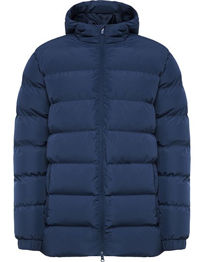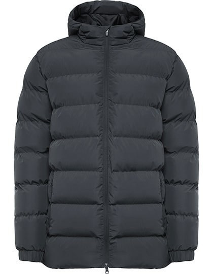 Obermaterial: 100% Polyester, Taft, 110 g/m²; Wattierung: 100% Polyester, 160 g/m²; Futter: 100% Polyester, Taft, 65 g/m² | Wattierter Sportparka | Kapuze mit Schirm | 2-Wege-Frontreißverschluss mit passendem Puller und Kinnschutz | Elastische Ärmelabschlüsse | Zwei Seitentaschen mit Reißverschluss | Brusttasche links innen | Veredelungszugang