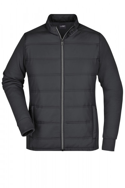 Rückenteil und Ärmel aus hochwertiger French-Terry-Qualität Innenseite nicht angeraut Leicht wattiertes und gestepptes Vorderteil 2 seitliche Taschen mit Reißverschluss, 2 Innentaschen JN1123: taillierter Schnitt 1/2 Oberweite: 48 cm 1/2 Taillenweite: 42 cm 1/2 Saumweite: 47 cm Länge ab Schulter: 62 cm Ärmel Länge: 62 cm OEKO-TEX® Standard 100 (15.0.70467) Stepp