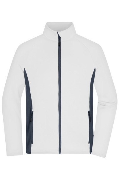 Pflegeleichtes, wärmendes und atmungsaktives Material Glatte Außenseite, innen angeraut Durchgehend unterlegter Reißverschluss mit Kinnschutz Stehkragen, Raglanärmel 2 Seitentaschen mit Reißverschluss, 2 Innentaschen Reißverschlüsse: YKK 1/2 Oberweite: 50 cm 1/2 Saumweite: 47 cm Länge ab Schulter: 69 cm Ärmel Länge: 75 cm Große Größen Raglan Strechfleece YKK - Reißverschluss