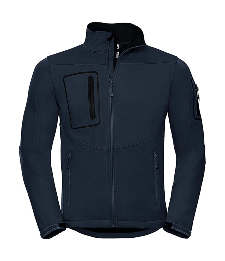·Atmungsaktives (bis 5.000 g/qm in 24 h) 3-lagiges Softshell-Material