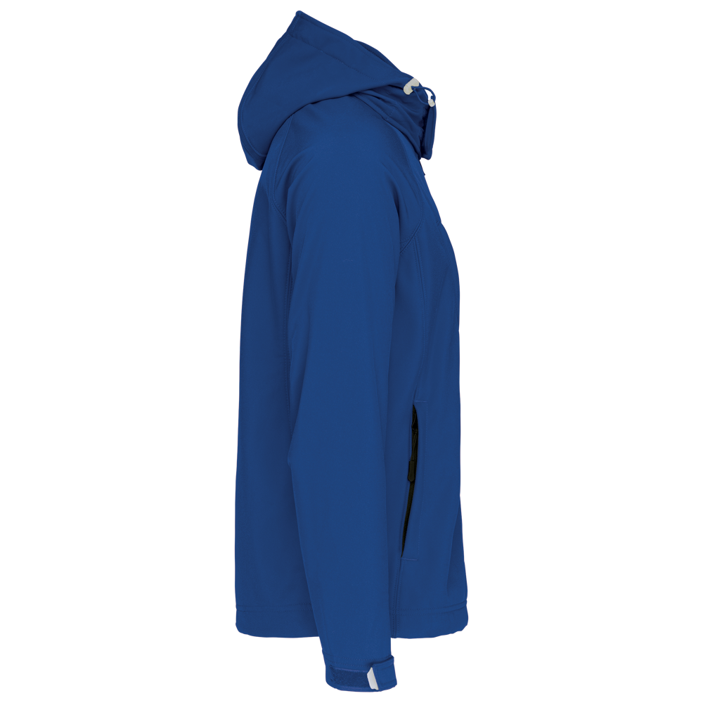 95% Polyester 5% Elasthan. 3-lagiges Verbund-Fleece. Membrantechnologie: atmungsaktiv 1000 g/m2/24h und wasserabweisend 5000 mm. Außenschicht: 95% Polyester 5% Elasthan, Mittelschicht: atmungsaktiv. Innenschicht: Polarfleece. Raglanärmel. Durchgehender Reißverschluss. 2 Vordertaschen mit Reißverschluss. 1 Brusttasche mit Reißverschluss. Ärmelverstellung mittels Klettverschlüssen. Abnehmbare Kapuze mit Klettverschluss. Kordelzug an der Kapuze. Innen unsichtbarer Reißverschluss zum Veredeln. Raglanärmel.