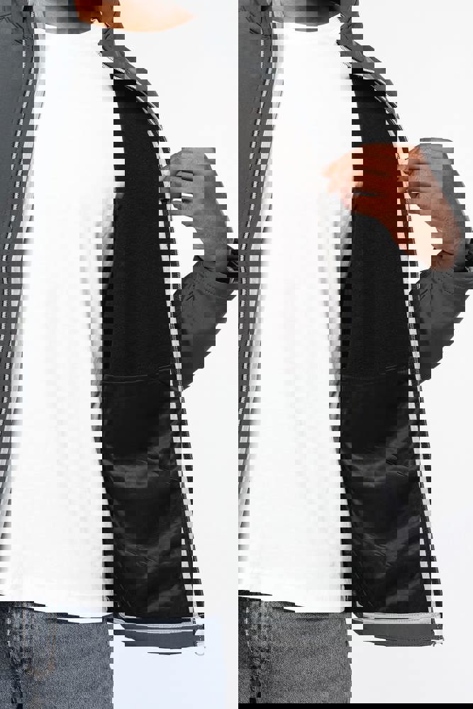 Außenmaterial: 95 % Polyester / 5 % Elasthan. Innenmaterial: 100 % Polyester-Mikrofleece. Wasserabweisendes Gewebe. Gerader Schnitt. 2 Reißverschluss-Außentaschen. Kontrastfarbene Reißverschlüsse. Verlängerter Rücken. Ziernähte an Schultern und Seiten.