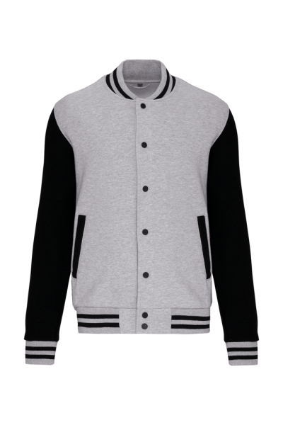 70 % Baumwolle / 30 % Polyester. Gebürstetes 3-Faden-Fleece. Kontrastfarbene Set-in-Ärmel. Druckknopf-Verschluss auf der Vorderseite. Strickbündchen mit zwei kontrastfarbenen Paspeln an Kragen, Ärmeln und unterem Saum. 2 Paspeltaschen auf der Vorderseite. Fischgrätnackenband und Befestigungsschlaufe auf der Krageninnenseite. Kein Markenetikett am Kragen, nur Größenkennzeichnung, für eine leichtere Veredelung. Ein echtes Kultmodell: Man sieht sie überall, sowohl in der Straße als auch in Schulen und sogar auf den Laufstegen.