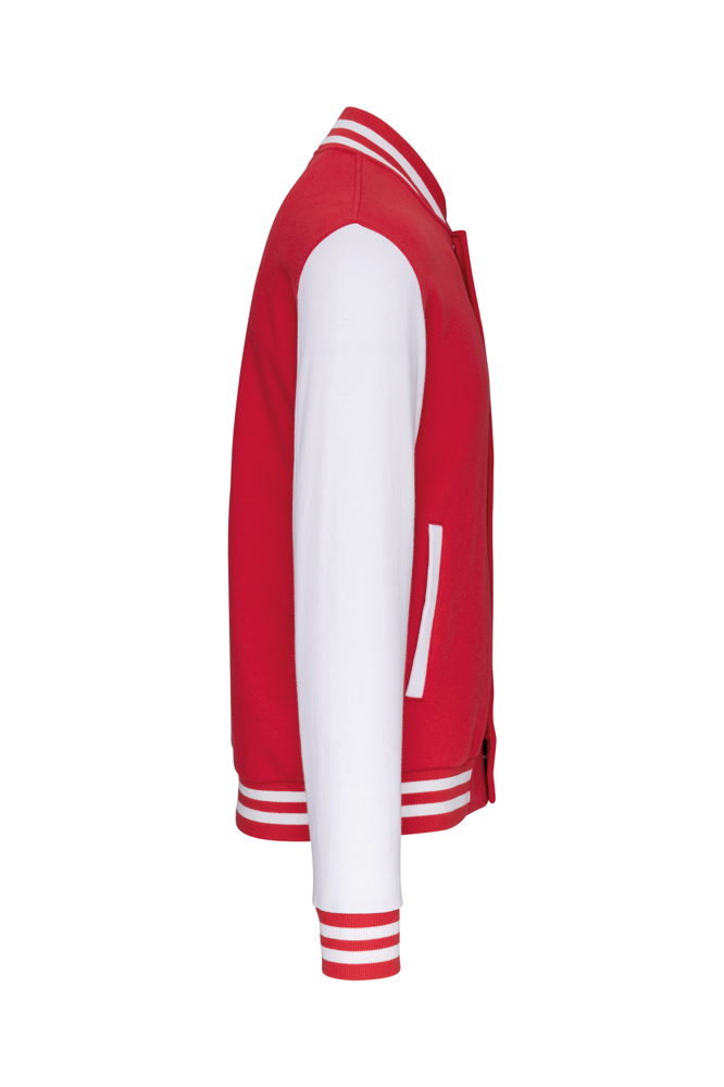 70 % Baumwolle / 30 % Polyester. Gebürstetes 3-Faden-Fleece. Kontrastfarbene Set-in-Ärmel. Druckknopf-Verschluss auf der Vorderseite. Strickbündchen mit zwei kontrastfarbenen Paspeln an Kragen, Ärmeln und unterem Saum. 2 Paspeltaschen auf der Vorderseite. Fischgrätnackenband und Befestigungsschlaufe auf der Krageninnenseite. Kein Markenetikett am Kragen, nur Größenkennzeichnung, für eine leichtere Veredelung. Ein echtes Kultmodell: Man sieht sie überall, sowohl in der Straße als auch in Schulen und sogar auf den Laufstegen.