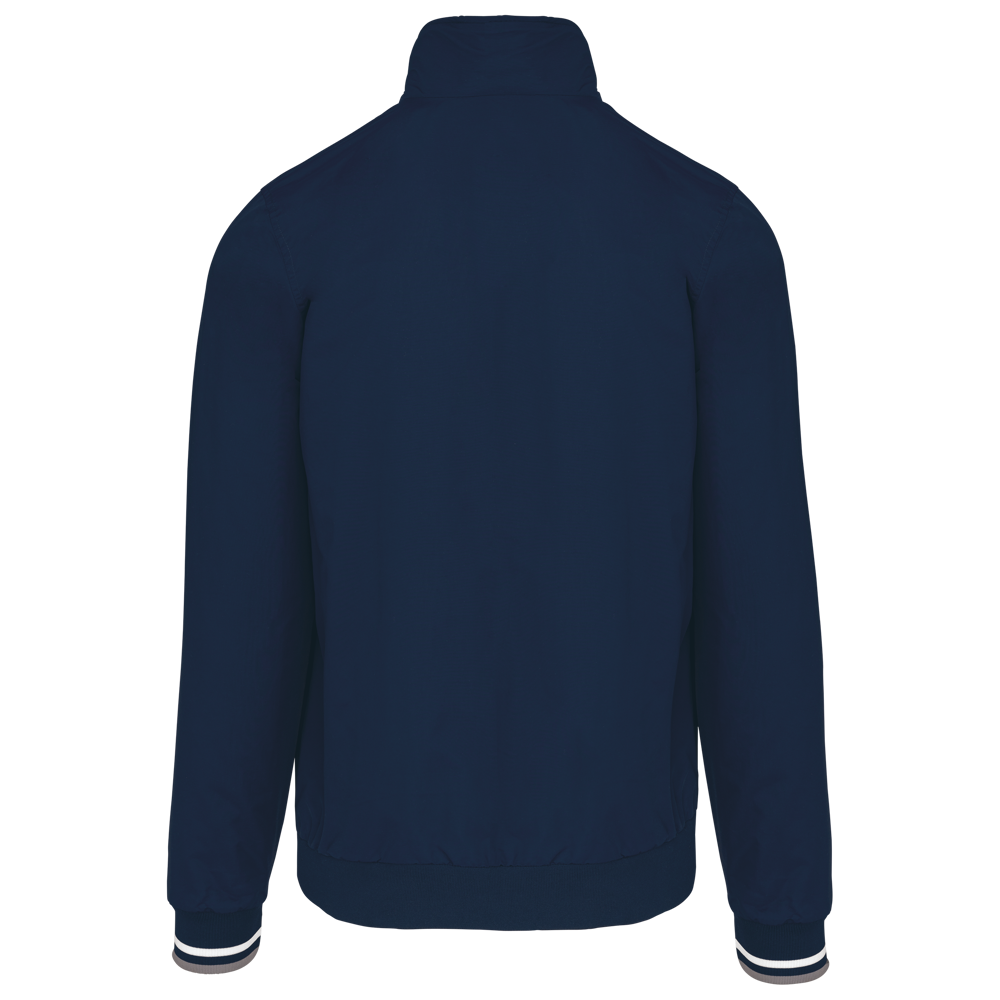 100% Polyamid Taslan Ottoman. Futter: 100% Polyester-Netzgewebe. Solides Gewebe mit Matteffekt. Zwei Fronttaschen mit Reißverschluss. Eine Brusttasche. Eine Innentasche. Kragen und Ärmel mit Kontraststreifen. Netzfutter mit Reißverschluss für leichtes Veredeln. Rippstrick am Bund einfarbig. Rippstrick an den Ärmeln in Kontrastfarbe.