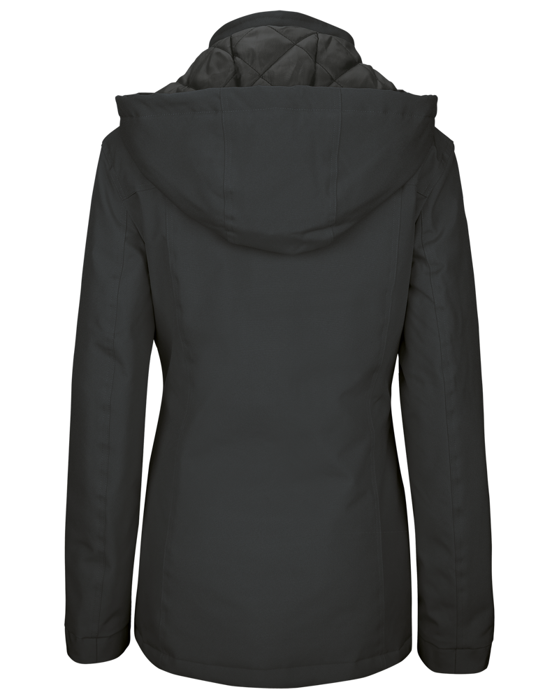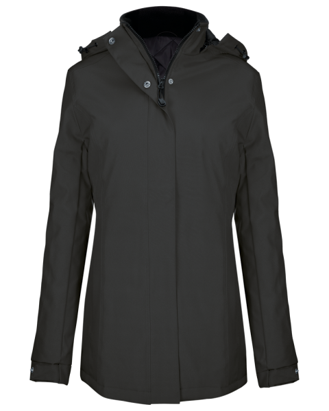Außenseite: 100 % Oxford-Polyester. Innenseite: Polyester-Steppfutter. Reißverschluss mit Leiste und unsichtbaren Druckknöpfen. 2 Reißverschluss-Außentaschen. 1 Reißverschluss-Innentasche. Abnehmbare Kapuze. Kragen mit Fleecefutter. Reißverschluss für leichtes Veredeln.