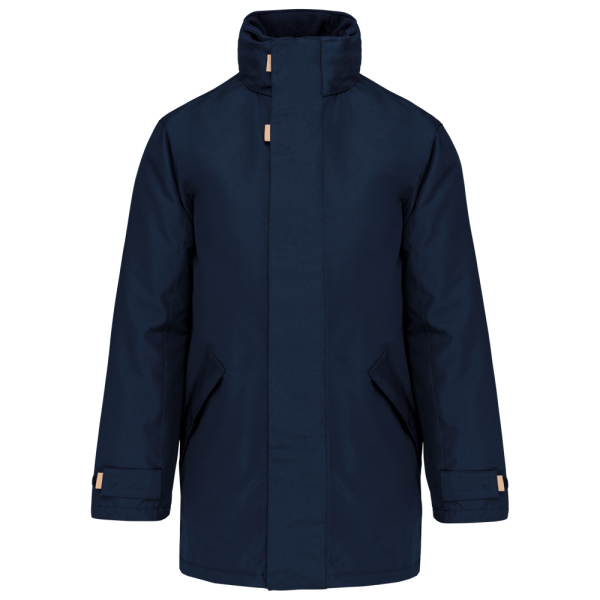 Außenmaterial: 100% Oxford-Polyester. Futter und Wattierung 100% Polyester. Klettverschluss-Kinnschutz, Full Zip mit Windschutzleiste und Klettverschluss. Große Innentasche mit Klettverschluss. Hoch schließender Kragen mit Fleece-Futter und versteckter Kapuze. 2 Reißverschlusstaschen vorne. Innen Handytasche mit Klettverschluss. Ärmelverstellung mittels Klettverschlüssen. Reißverschluss für Veredelungszugang mittels Reißverschluss.