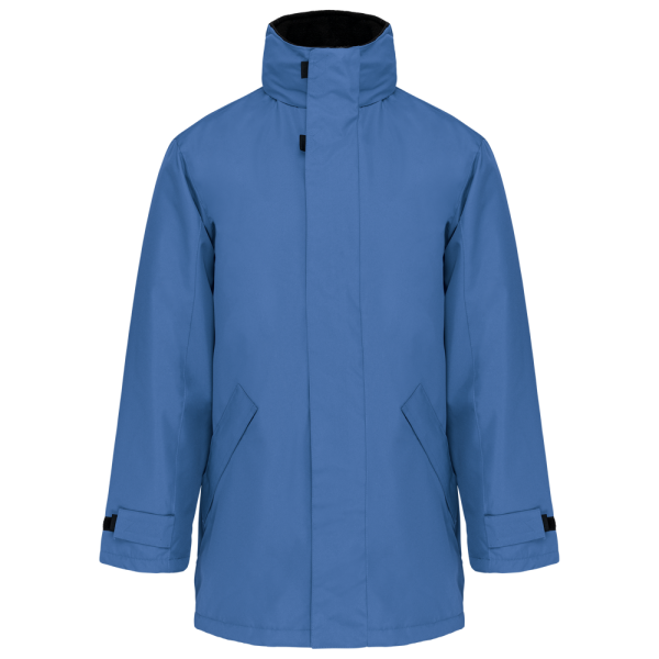 Außenmaterial: 100% Oxford-Polyester. Futter und Wattierung 100% Polyester. Klettverschluss-Kinnschutz, Full Zip mit Windschutzleiste und Klettverschluss. Große Innentasche mit Klettverschluss. Hoch schließender Kragen mit Fleece-Futter und versteckter Kapuze. 2 Reißverschlusstaschen vorne. Innen Handytasche mit Klettverschluss. Ärmelverstellung mittels Klettverschlüssen. Reißverschluss für Veredelungszugang mittels Reißverschluss.