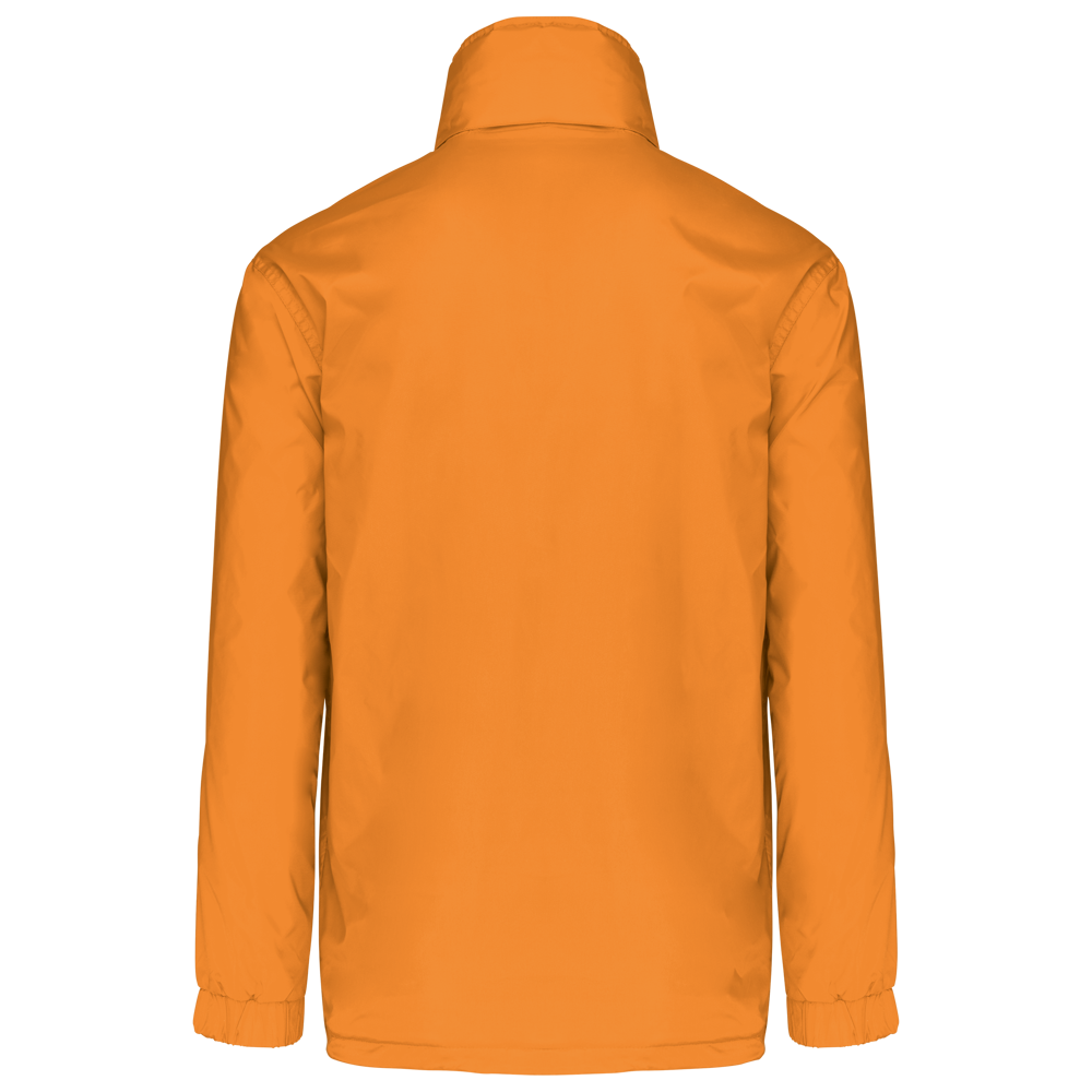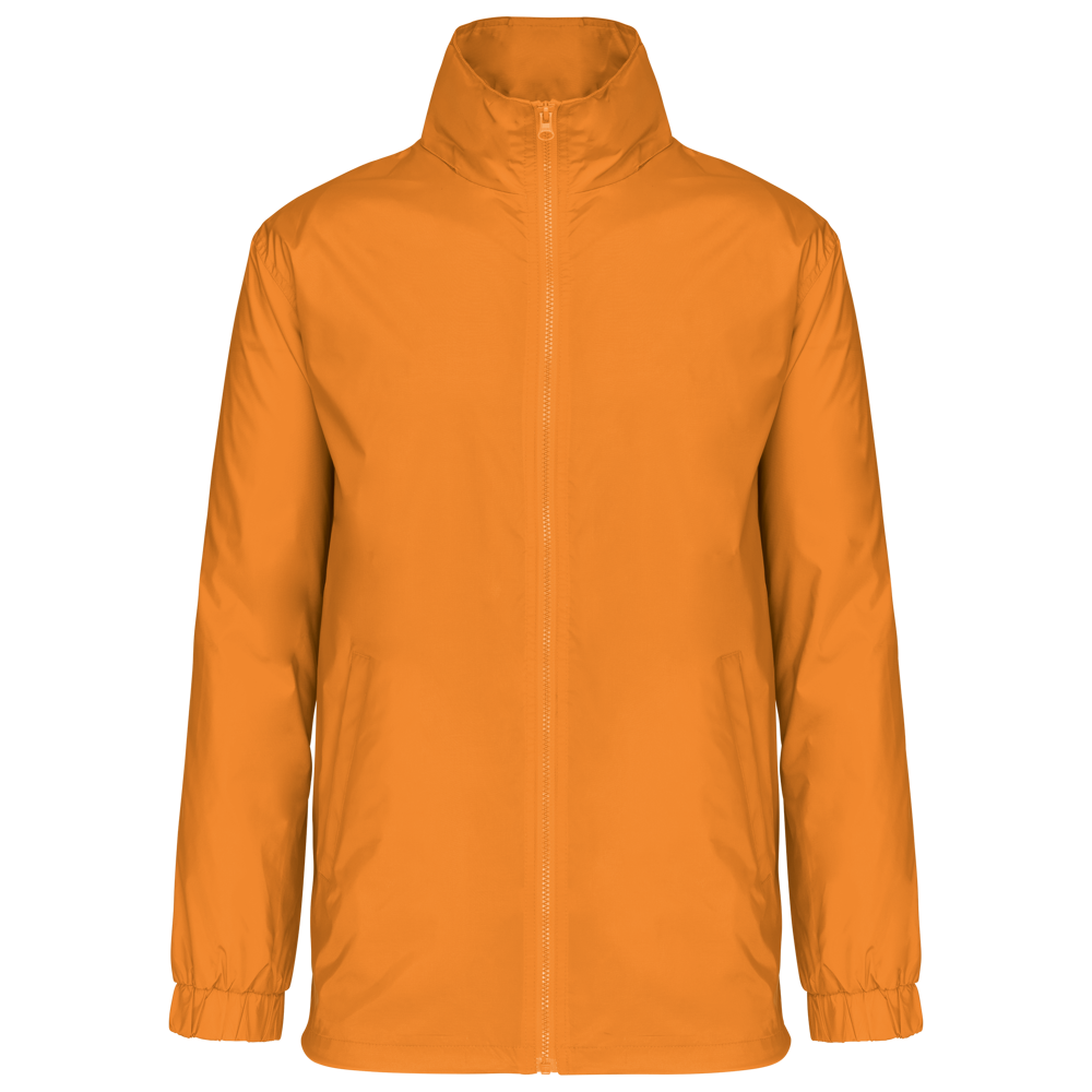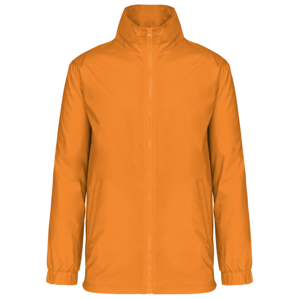 100% Polyamid 210 T mit Acrylbeschichtung innenseitig. Durchgehender Reißverschluss. 1 Innentasche + 2 Seitentaschen mit Klettverschluss. Elastischer Kordelzug mit Stoppern am Bund. Kapuze im Kragen mit Kordelzug.100% Polyester-Jersey. Futter graumeliert. Veredelungszugang an der Innenseite.