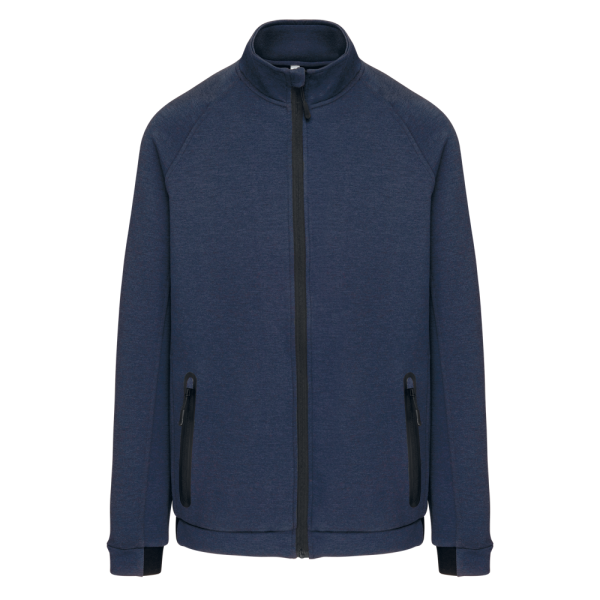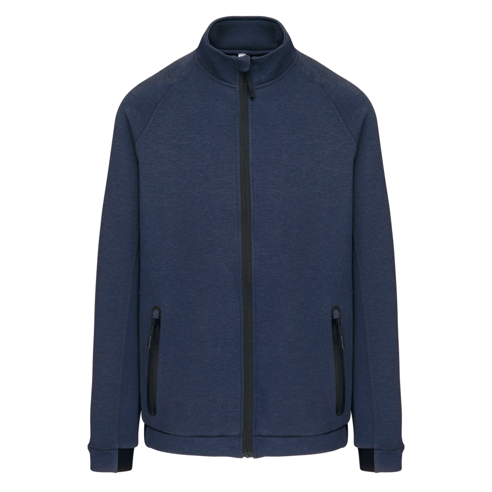 94 % Polyester / 6 % Elasthan (79 % Polyester / 15 % Viskose / 6 % Elasthan für melierte Farben). Besonders bequemes Material. Reißverschluss. 2 geschweißte Reißverschlusstaschen vorne. Ärmelbündchen mit Elastikeinsatz Black auf allen Farben und Dark Grey auf der Ash Heather (auch Verschlüsse). Ideal in Kombination mit der Trainingshose PA1008 für einen kompletten Urban Apparel Look.