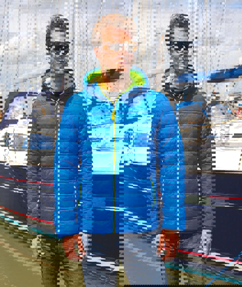 Außen: 100% Nylon (20D). Futter: 100% Nylon (20D), Wattierung: 100% Polyester 220g/m² (gesteppt). Super leicht und warm. Integrierte, verstellbare Kapuze. Full Zip. Seitentaschen mit Zip. Weiche, elastische Ärmelbündchen. Attraktive Passform. Wind- und wasserdicht.