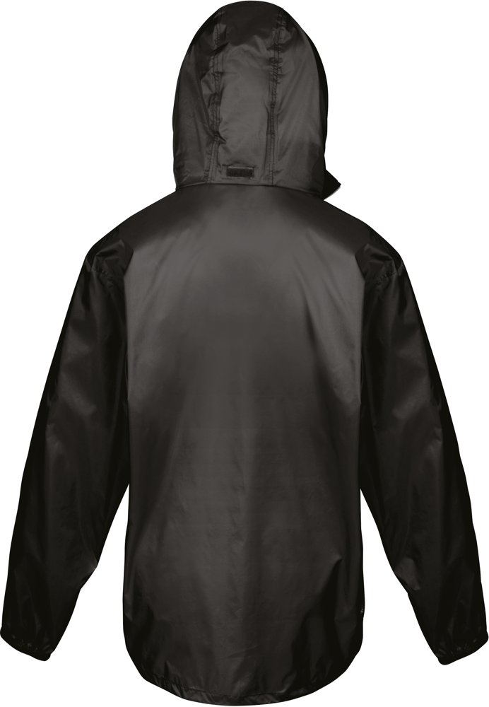 100% Nylon wasserdicht 3000 mm und atmungsaktiv 1000 g/m²/24h. Federleicht. Durchgehender Reißverschluss vorne in Kontrastfarbe. Versiegelte Nähte. Seitentaschen: Links mit Reißverschluss. Elastische Ärmelbündchen. Integrierte Kapuze mit elastischem Zugband zum regulieren. Verstellbarer Kordelzug im Bund. Verstaubar in passendem Beutel. Gedrucktes Halsetikett. Komfortable Passform.