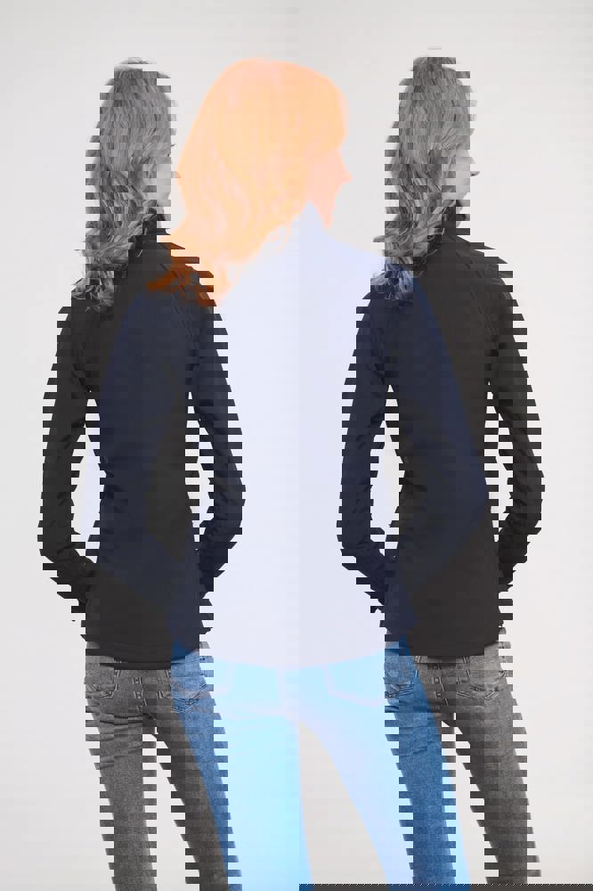 Außen: 92% Polyester / 8% Elasthan. Futter: 100% Polyester (Microfleece), verschweißt. 3-lagiges Soft Shell-Material mit atmungsaktiver Membran und Microfleece-Futter. Winddicht und wasserabweisend (5.000 mm). Nackenband. Full Zip mit Kinnschutz und Windschutzblende innen. Raglanartige Zier-Abnäher. Set-In-Ärmel. Brust- und Seitentaschen mit Innenfutter und umgedreht eingenähten Zips mit Zugband. Verstellbare Ärmelbündchen mit Klettverschluss. Kordelzug mit Stoppern im Bund. Verlängertes Rückenteil. Femininer, taillierter Schnitt. Geeignet für 40° Wäsche, im Trockner niedrige Temperatur wählen (bitte keinen Weichspüler verwenden).
