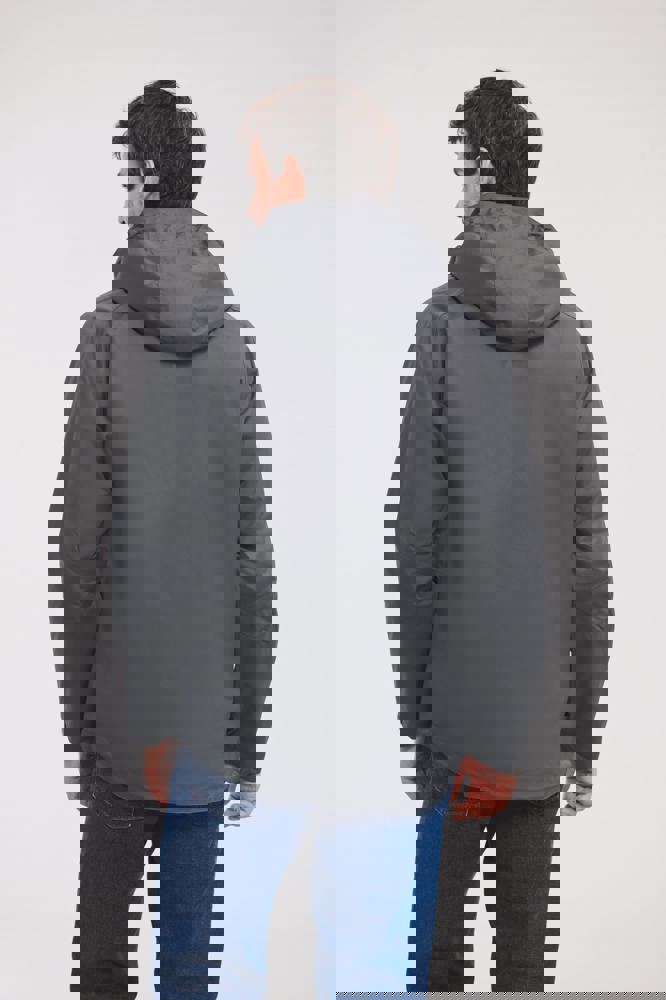 100% Nylon Taslan mit Polyurethan-Beschichtung. Verschweißte Nähte an beanspruchten Stellen, wasserdicht (2.000 mm). Atmungsaktiv (2.000 g/m² in 24 h). 3-teilige Kapuze im Kragen. Umgekehrt eingenähter Ton-in-Ton YKK®-Zip mit Kinnschutz. Verdeckte Windschutzleiste mit Klettverschluss. Diverse Zip-Taschen. Verstellbare Ärmelbündchen. Verlängertes Rückenteil. Kordelzug mit Stoppern im Bund. Vollständig Netz gefüttert mit Veredelungszugang im Bund.