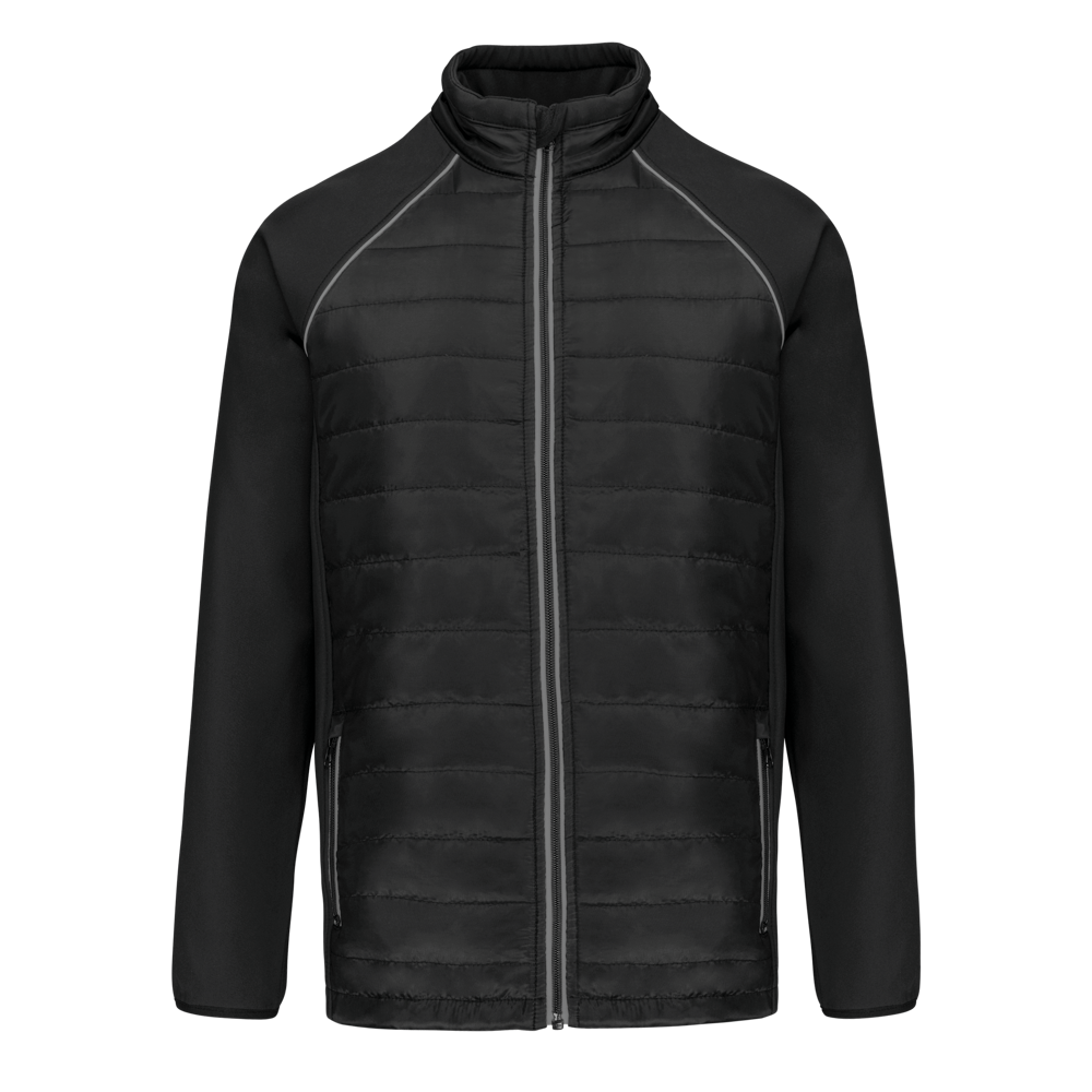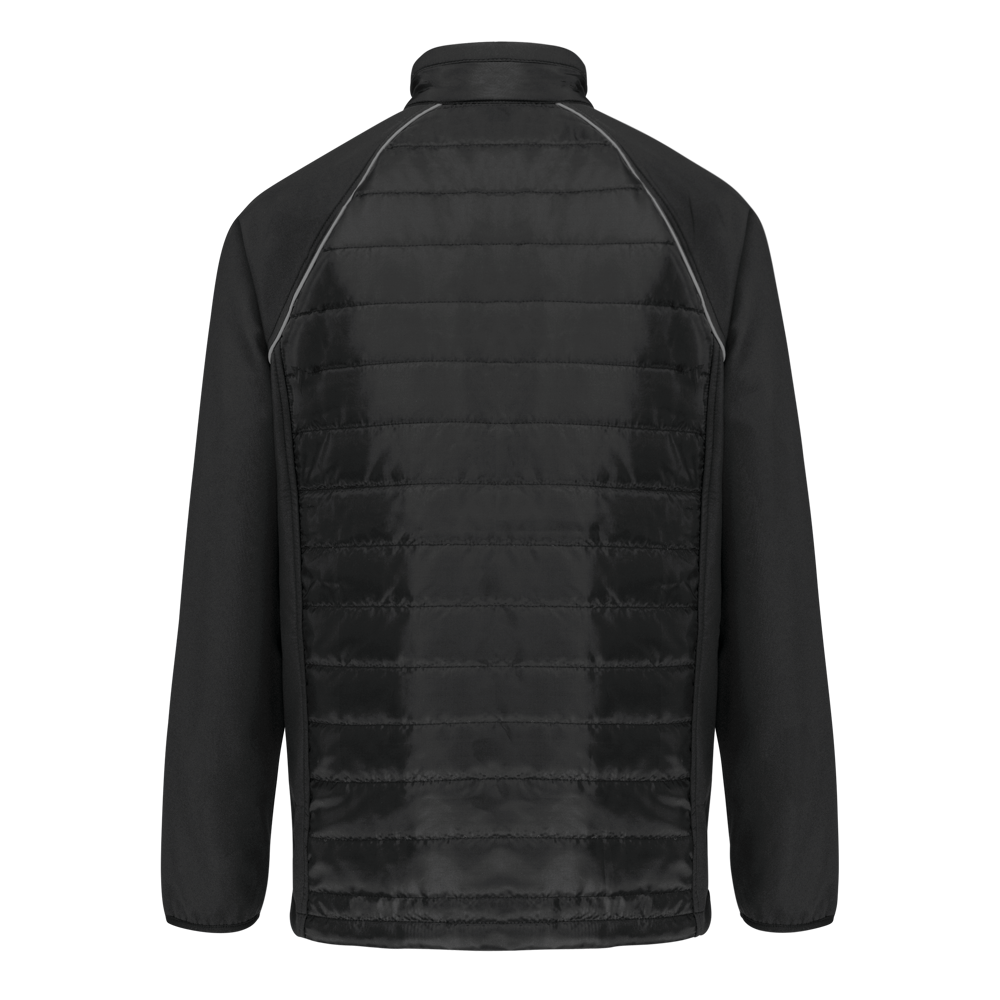 100 % Polyester. Zweilagige Softshell, 4-Wege-Stretch für mehr Tragekomfort mit Fleecefutter an Ärmeln und Schultern für optimale Wärme. Vorderseite und Rücken : 100 % Polyester, 75 g Taft 230T mit Beschichtung. Stoff mit wasserabweisender Behandlung. 2 Reißverschlusstaschen auf der Vorderseite. 1 Namensschild innen links. Kontrastfarbene Paspel an Ärmelbündchen und auf der Krageninnenseite. Reißverschluss auf der Vorderseite und kontrastfarbene Taschen. Unsichtbarer Reißverschluss zur Veredelung am Saum. Ideal für eine tägliche Nutzung.