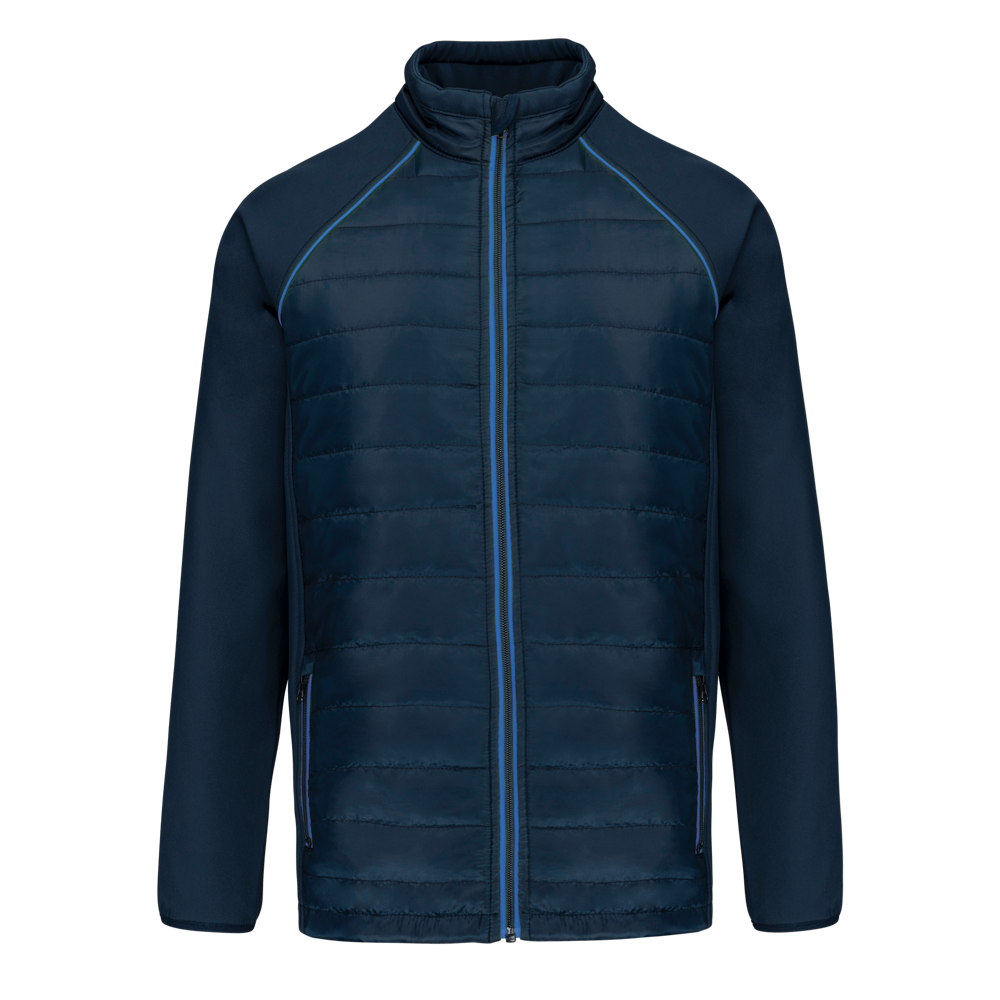 100 % Polyester. Zweilagige Softshell, 4-Wege-Stretch für mehr Tragekomfort mit Fleecefutter an Ärmeln und Schultern für optimale Wärme. Vorderseite und Rücken : 100 % Polyester, 75 g Taft 230T mit Beschichtung. Stoff mit wasserabweisender Behandlung. 2 Reißverschlusstaschen auf der Vorderseite. 1 Namensschild innen links. Kontrastfarbene Paspel an Ärmelbündchen und auf der Krageninnenseite. Reißverschluss auf der Vorderseite und kontrastfarbene Taschen. Unsichtbarer Reißverschluss zur Veredelung am Saum. Ideal für eine tägliche Nutzung.