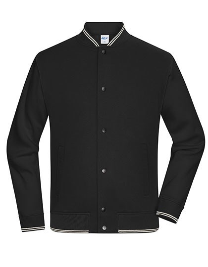 Hochwertige Sweat-Qualität mit angerauter Innenseite | Materialmix aus gekämmter, ringgesponnener BIO-Baumwolle und recyceltem Polyester | Kragen und Bündchen mit Kontraststreifen | Kragen, Armbündchen und Bund mit Elasthan | 2 seitliche Eingrifftaschen | Frontverschluss mit Druckknöpfen