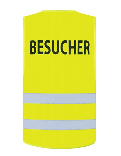 Mit Aufdruck: "BESUCHER" | Großzügig geschnitten, ermöglicht ein Tragen über der Jacke | Saumeinfassung Ton in Ton | Zwei 5 cm breite Reflexstreifen um den Körper | Größenverstellbar durch zwei Klettverschlüsse | EN ISO 20471:2013/A1:2016 | Ausgestattet mit EAN Barcode | Einzeln in Polybeutel verpackt | Gebrauchsanweisung in allen Amtssprachen der EU | Der Hersteller gewährleistet die Reflektionseigenschaft gemäß EN-Norm für 25 Waschgänge bis 40 °C. | Dies ist ein Artikel zur Persönlichen Schutzausrüstung (PSA). Gemäß EU-Verordnung 2016/425 über persönliche Schutzausrüstung ist eine EU-Konformitätserklärung seitens des Herstellers Pflicht. Die Konformitätserklärung ist auf www.korntex.com verfügbar.