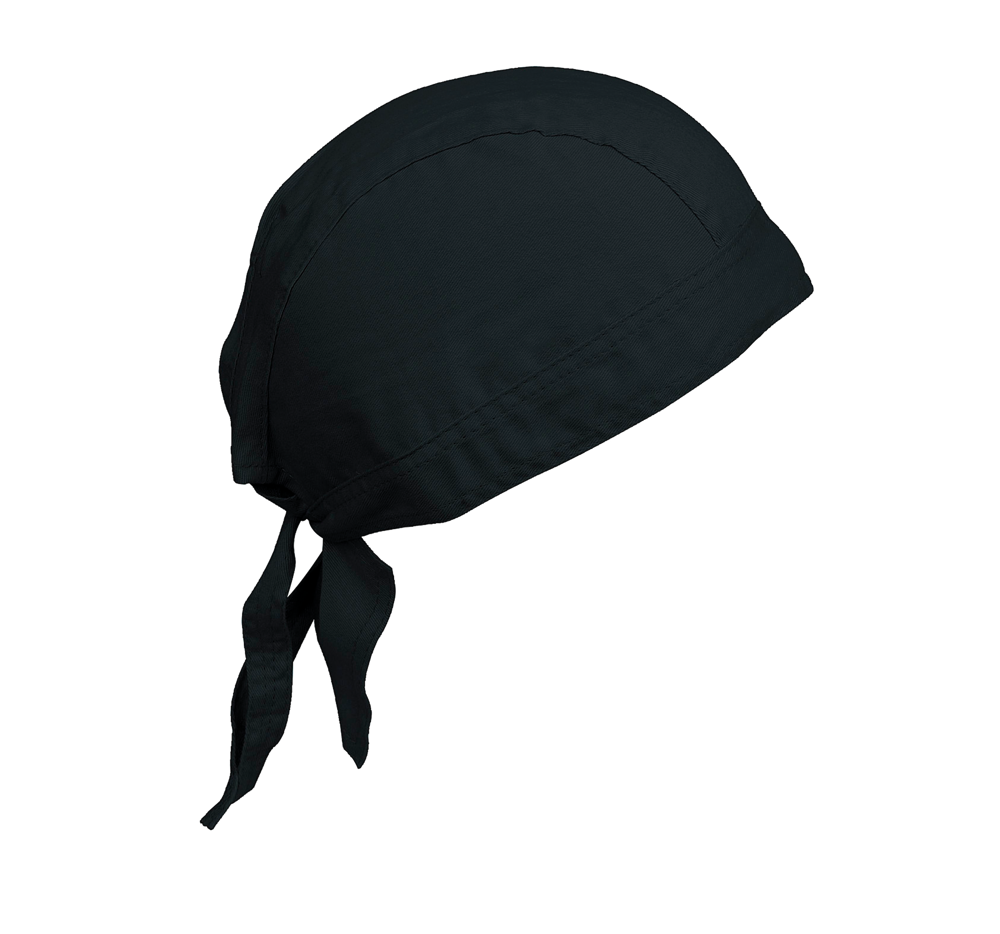 100% gebürstetes Baumwolltwill. Das Tuch wird mit 2 Bändern am Hinterkopf zusammengebunden.