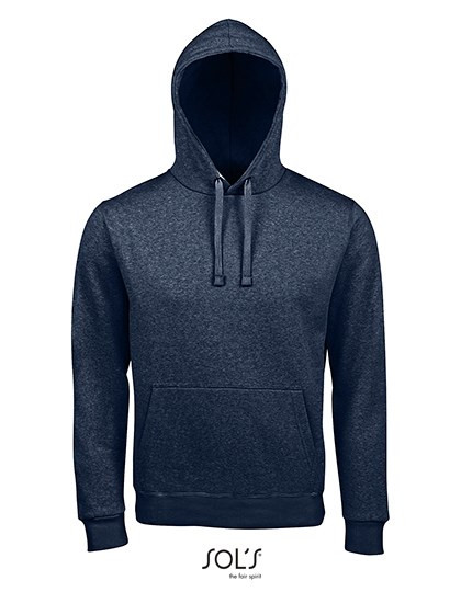 Fleece-Material mit geringer Schrumpfung (280); 80% Ringspun-Baumwolle / 20% Polyester; angerautes Futter; Außen: 100% Baumwolle | Kängurutasche an der Vorderseite | Geschnitten und genäht | Gefütterte Kapuze mit Kordelzug | 2 x 2 gerippte Ärmelabschlüsse und Saum | Halbmondpasse auf der Krageninnenseite | Nackenband | Kein Label