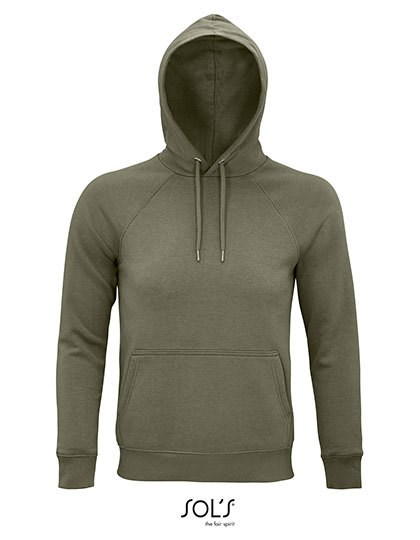 Fleece 280 | 80% Bio-Baumwolle / 20% recycelter Polyester | 3-Faden-Garn | Innen gebürstet | Obermaterial: 100% Baumwolle, Ripp-Stoff: 97% Bio-Baumwolle / 3% Elasthan | Bio-Hoodie | Seitennaht | Überkreuzter Kragen | Kängurutasche | Raglan-Ärmel | Halbmond im Nackenbereich | Jersey-Nackenband | 2 x 2 gerippte Ärmelabschlüsse und Saum | Silberne Ösen und Stopper | Runder Ton-in-Ton-Kordelzug | Kein Label