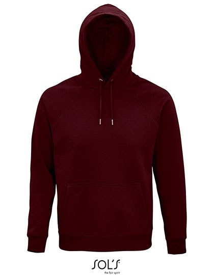 Fleece 280 | 80% Bio-Baumwolle / 20% recycelter Polyester | 3-Faden-Garn | Innen gebürstet | Obermaterial: 100% Baumwolle, Ripp-Stoff: 97% Bio-Baumwolle / 3% Elasthan | Bio-Hoodie | Seitennaht | Überkreuzter Kragen | Kängurutasche | Raglan-Ärmel | Halbmond im Nackenbereich | Jersey-Nackenband | 2 x 2 gerippte Ärmelabschlüsse und Saum | Silberne Ösen und Stopper | Runder Ton-in-Ton-Kordelzug | Kein Label