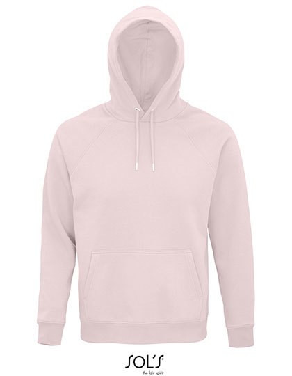 Fleece 280 | 80% Bio-Baumwolle / 20% recycelter Polyester | 3-Faden-Garn | Innen gebürstet | Obermaterial: 100% Baumwolle, Ripp-Stoff: 97% Bio-Baumwolle / 3% Elasthan | Bio-Hoodie | Seitennaht | Überkreuzter Kragen | Kängurutasche | Raglan-Ärmel | Halbmond im Nackenbereich | Jersey-Nackenband | 2 x 2 gerippte Ärmelabschlüsse und Saum | Silberne Ösen und Stopper | Runder Ton-in-Ton-Kordelzug | Kein Label