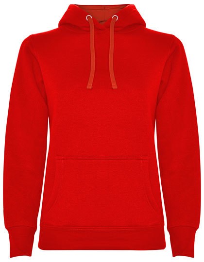 Innen angeraut | Tailliert | Kapuze innen (Single Jersey), Kordelzug und Metall-Ösen in Kontrastfarbe | Nackenband mit Fischgrätmuster | Kangorootasche | Ärmelbündchen und Saum mit 1x1 Ripp-Strick und Elasthan | Ärmelbündchen mit Daumenöffnung | Herausreißbares Label