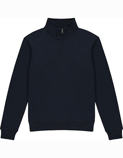 Herren-Sweatshirt mit 1/4-Reißverschluss vorne und Kadettenkragen | Reguläre Passform | Nackenbereich und Innenkragen aus gleichem Material | Verklebtete Schulternähte | Vollständig doppellagige Manschetten und Paspeln mit doppelter Kantennaht | Doppellagiger Kadettenkragen | Doppelt genähte Armausschnitte und Schulternähte | Zirkoniumfarbener Metall-YKK-Reißverschluss und -Zug | Herausnehmbares Nackenlabel | Verdeckter Reißverschluss für bessere Bedruckbarkeit