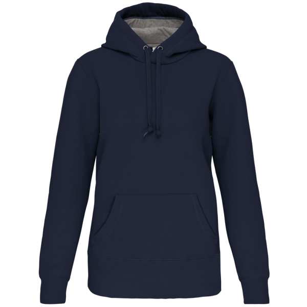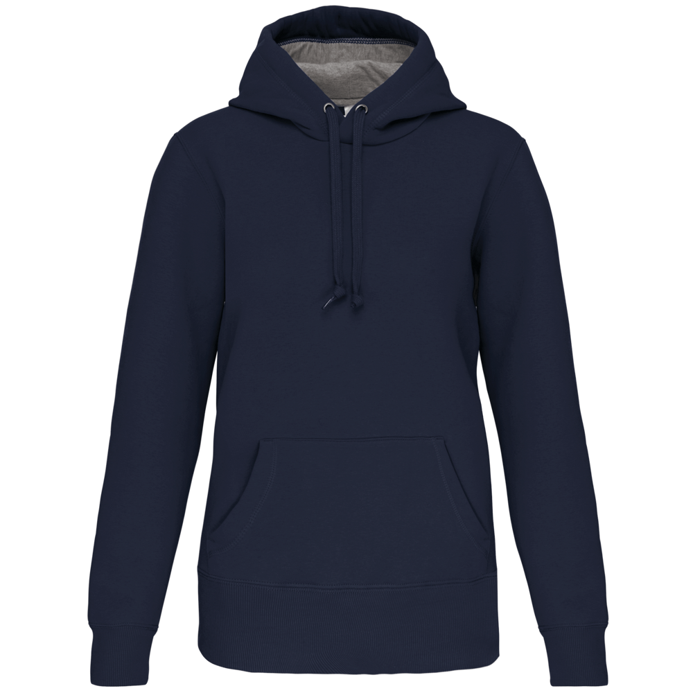 80% Baumwolle / 20% Polyester 'LSF'. Gekämmte Baumwolle. Vorgeschrumpfte Ware, innen angeraut. Silikon gewaschen. Kontrastfarbenes Nackenband. Kapuze inwendig Dark Grey (Farbton Oxford Grey) oder Heather Grey (alle anderen Farben). Kängurutasche. Rippstrickbündchen.