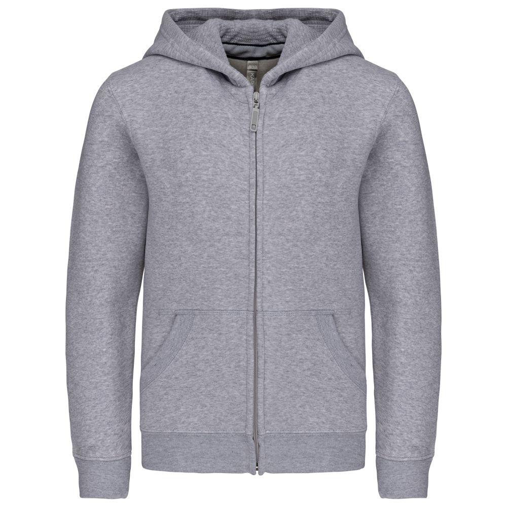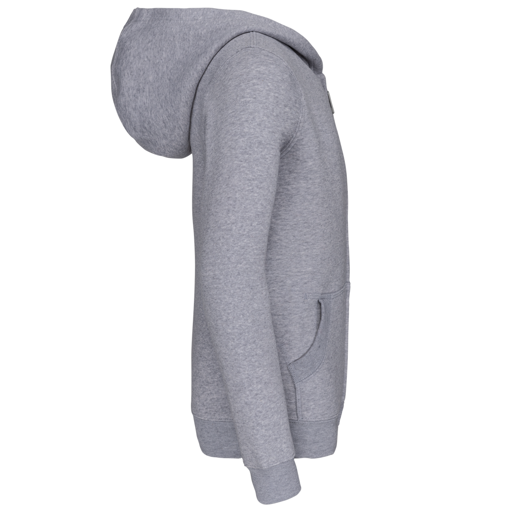 80% Baumwolle / 20% Polyester. Gekämmte Baumwolle. Gebürstetes Fleece. Verstärktes Kontrast-Nackenband (Heather Grey für alle Farben, Middle Grey für Oxford-Grey). Kängurutasche. Gerippt an Bund und Saum. Gefütterte Kapuze. Reißverschluss.