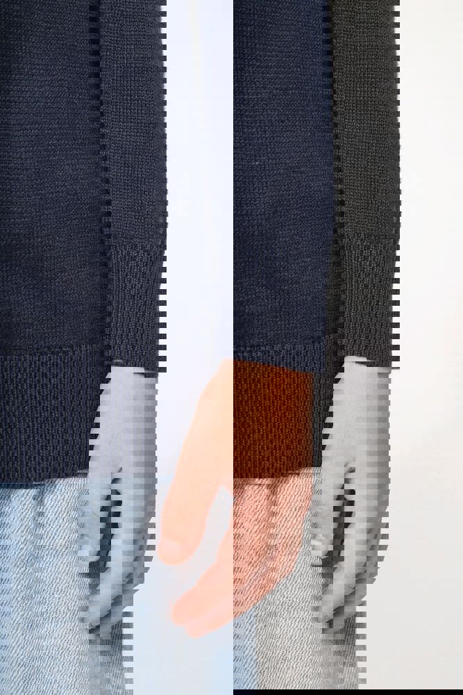 50 % Baumwolle / 50 % Acryl. Acryl 12 gg Strick. Doppelte Strickbündchen am Kragen. Nackenband. Strickbündchen an Ärmeln und Saum.