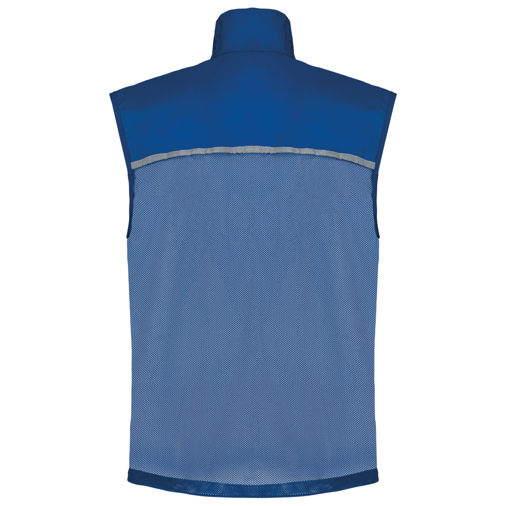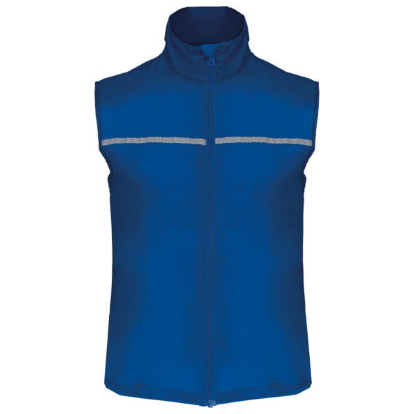 Winddicht aus 100% Polyamid. Rückenteil aus Netzstoff. Elastischer Kordelzug mit Stoppern am Bund. Reflektorstreifen vorne und hinten. Mehrzweck-Innentasche. Abmessung 9,5x11 cm.