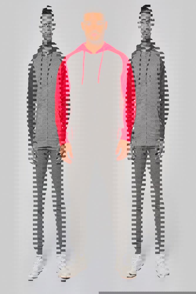 PA380 - Zweifarbige Unisex-Fleecejacke mit Reißverschluss und Kapuze
