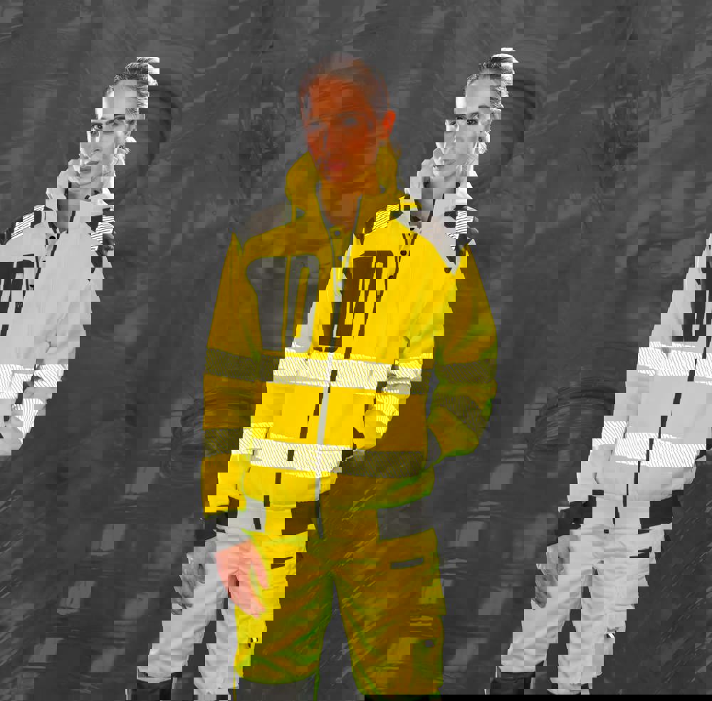 100 % Polyester. 100 % recycelter REPREVE®-Polyester. Hergestellt aus Kunststoffflaschen und post-industriellen Abfällen. Warmes, atmungsaktives, windfestes Sicherheitssweatshirt. YKK-Reißverschluss auf der Vorderseite mit Zieher. Ärmelabschlüsse und Taille aus dehnbarem Strick. Aufgedruckte, reflektierend, dehnbare Streifen. Seitliche Reißverschlusstaschen und Brusttasche mit Reißverschluss rechts. Kapuze mit Kordelzug. Auf der Innenseite gebürstetes Fleece. Aufhänger. Hi-Vis-Norm: EN ISO 20471: 2013+A1: 2016 Klasse 2 (RIS-3279-TOM Klasse 2 (nur orangefarbenes Modell).