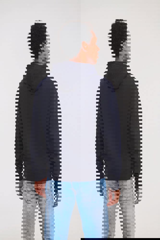 80% gekämmte Ringspun-Baumwolle / 20% Polyester Luxuriöser 3-Lagen-Stoff. Doppellagige Kapuze. Flacher, breiter Kordelzug mit Knopflochösen. Nackenband in Fischgrätoptik. Schmalere Ärmel mit nach vorn versetzten Schulternähten. Aufgesetzte Kängurutasche. Zugang für MP3-Player, Kopfhörer-Kabelführung. Decknähte an Armausschnitt, Ärmelbund und Saum. Rippstrickbündchen am Ärmelabschluss und Bund. Zeitgemäßer, gerader Schnitt.