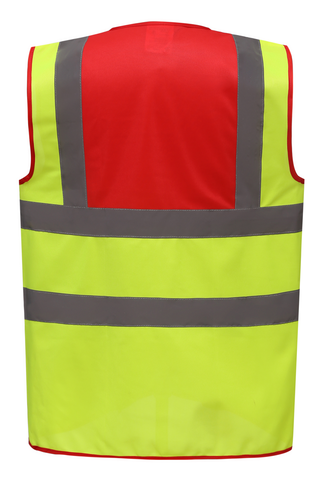 100% Polyester-Gewebe mit Klettverschluss. Zwei 5 cm breite Reflexstreifen um den Körper und einer über jeder Schulter. Hi-Vis Yellow, Hi Vis Orange, Orange/Hi Vis Yellow nach EN ISO20471: 2013 Klasse 2. Black/Hi Vis Yellow, Lime/Hi Vis Yellow, Navy/Hi Vis Yellow, Purple/Hi Vis Yellow, Paramedic Green/Hi Vis Yellow, Red/Hi Vis Yellow, Raspberry/Hi Vis Yellow, Royal Blue/Hi-Vis Yellow gemäß EN ISO20471: 2013 Klasse 1.