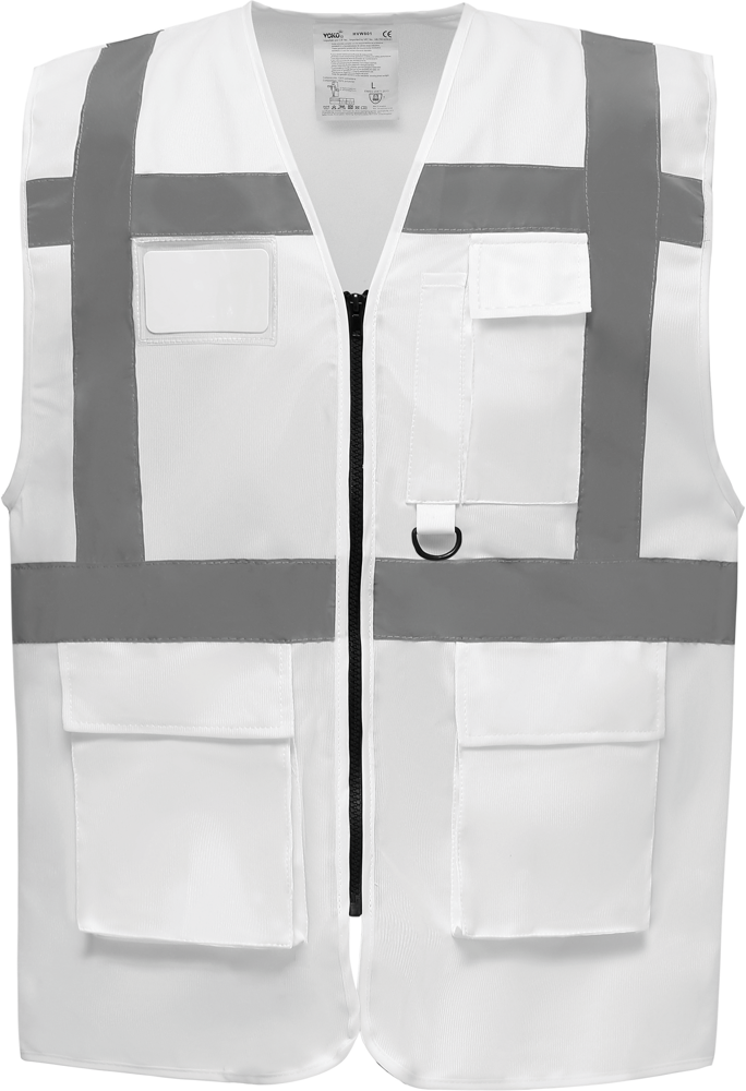 100% Polyester. 5 cm breite reflektierende Bänder um den Körper und eines über jeder Schulter. Handy-/Funkgerätetasche auf der linken Brust. Reißverschluss in voller Länge. Zwei untere Taschen mit Klappen sind von oben und von der Seite zugänglich. Stifttaschen & Schlüsselhalter. ID-Tasche auf der rechten Brust. große Fläche auf der Rückseite zur Dekoration. Hi Vis Yellow, Hi Vis Orange & Hi Vis Yellow/Hi Vis Orange nach EN ISO20471: 2013 Klasse 2. Paramedic Green/Hi Vis Yellow, Royal Blue/Hi Vis Yellow, Red/Hi Vis Yellow, Hi Vis Yellow/Black, Hi Vis Orange/Black, Hi Vis Yellow/Navy, Hi Vis Orange/Navy, Hi Vis Yellow/Grey, Hi Vis Orange/Grey & Hi Vis Yellow/Purple gemäß EN ISO20471: 2013 Klasse 1.