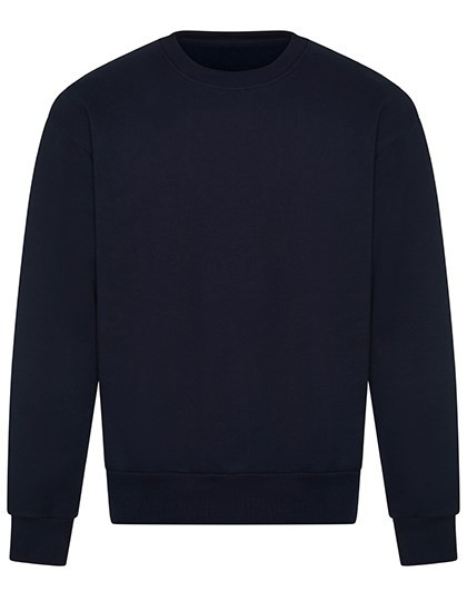 Ringgesponnene Baumwolle / recycelter Polyester | 100 % Baumwoll-Obermaterial | Oversized-Passform | Schweres Material | Rundhalsausschnitt | Gerippter Kragen, Bündchen und Saum | Eingesetzte Ärmel | Gebürstetes Innenvlies | Abreißetikett