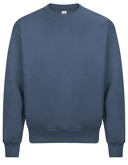 Ringgesponnene Baumwolle / recycelter Polyester | 100 % Baumwoll-Obermaterial | Oversized-Passform | Schweres Material | Rundhalsausschnitt | Gerippter Kragen, Bündchen und Saum | Eingesetzte Ärmel | Gebürstetes Innenvlies | Abreißetikett