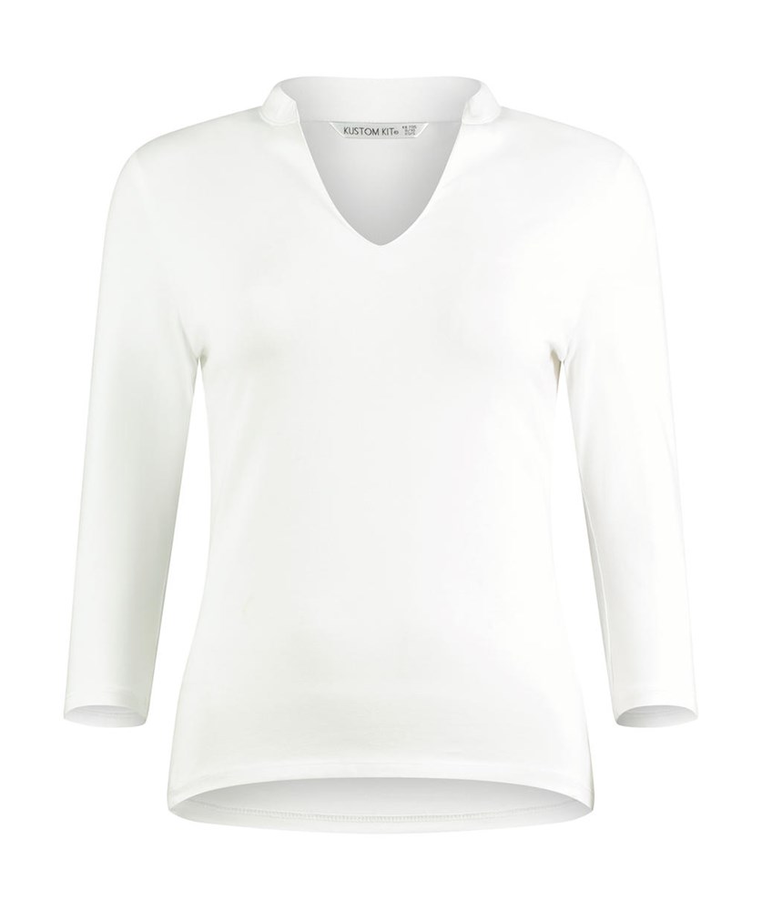 Regular Fit Mandarin Collar Top 3/4 Sleeve
