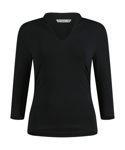 Regular Fit Mandarin Collar Top 3/4 Sleeve