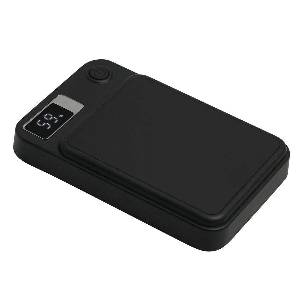 Powerbank MAGNET: geeignet für Smartphones und USB-betriebene Geräte, kabelloses Aufladen des Gerätes durch Auflegen auf die Kontaktfläche (Gerät muss für induktives Laden gerüstet sein), dank Magnetkraft hält das Gerät an der Powerbank (geräteabhängig), inkl. USB-Ladekabel mit USB Typ C Stecker (Länge: ca. 30 cm), mit Ladestandanzeige in Prozent, Ein- und Ausschalter, 1 USB Typ C Eingang und 1 USB Typ A Ausgang, Eingangsleistung: 5V/2A, Ausgangsleistung: 5V/2A, Kapazität: 5.000 mAh, leistungsstarker Lithium-Akku, in Box